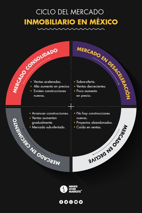 El mercado inmobiliario no se comporta caprichosamente, sino que sigue un proceso cíclico que responde a la oferta y demanda del mercado. La capacidad estratégica por detectar la posición y el movimiento de cada mercado se vuelve crucial, dado que permite identificar el momento óptimo para invertir, así como las necesidades desatendidas en el mismo. Para identificar estos movimientos se debe tener muy claro el balance de oferta y demanda, el cual se ve afectado por variables demográficas, económicas e inclusive psicográficas, las cuales tienden a desequilibrar la balanza creando oportunidades de mercado.